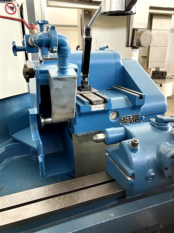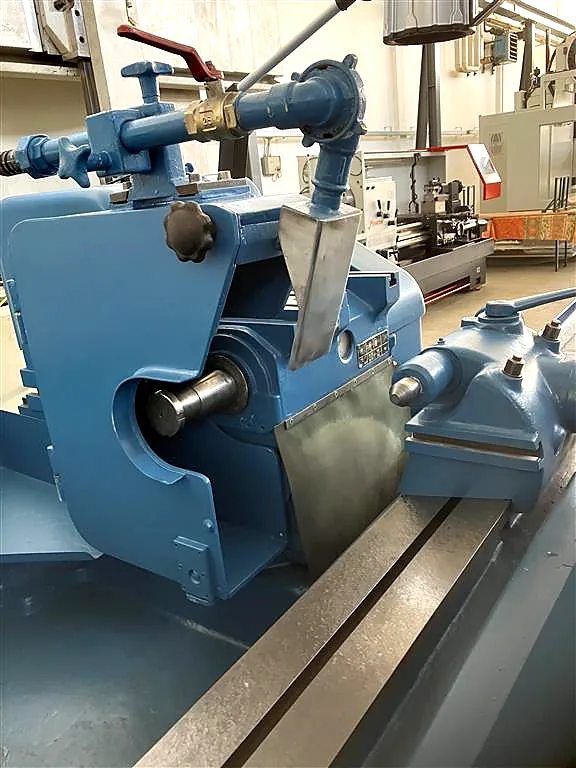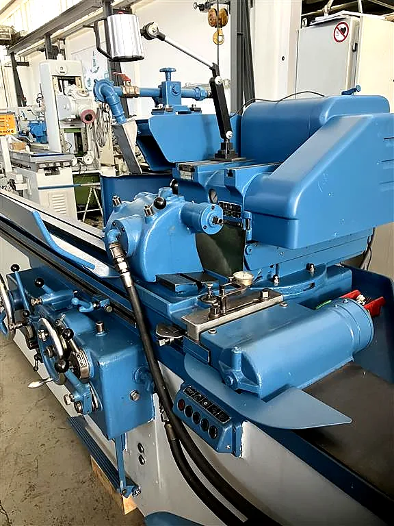 – Schleifscheiben: Dimensioniert mit 450 x 100 x 203,2 mmDie Maschine wurde komplett gereinigt und alle beweglichen Teile, wie Werkstückantrieb, Reitstock und Lünetten, wurden demontiert, überprüft und fachgerecht eingestellt. Die Führungen des Obertisches sowie des Untertisches und des Maschinenbettes wurden neu eingeschabt, was eine geometrische Präzision versichert. Die Elektrik im Schaltschrank wurde größtenteils erneuert, für sichere und störungsfreie Bedienung.